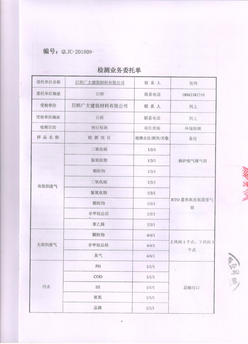 日照廣大建筑材料有限公司第四季度檢測(cè)報(bào)告